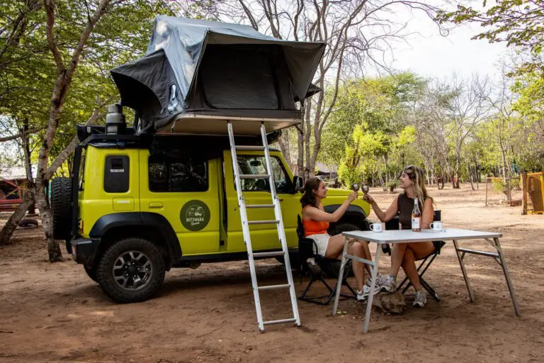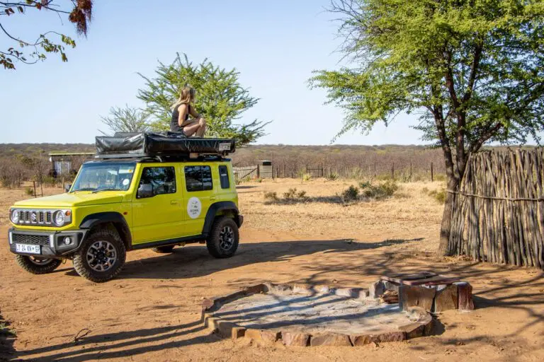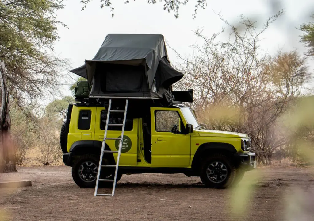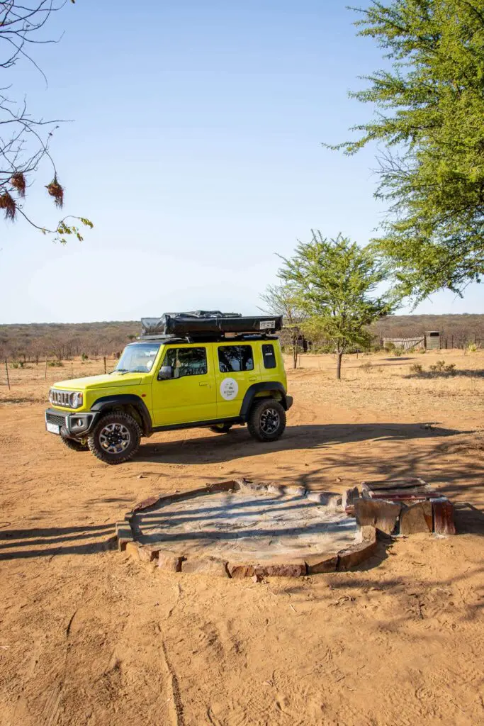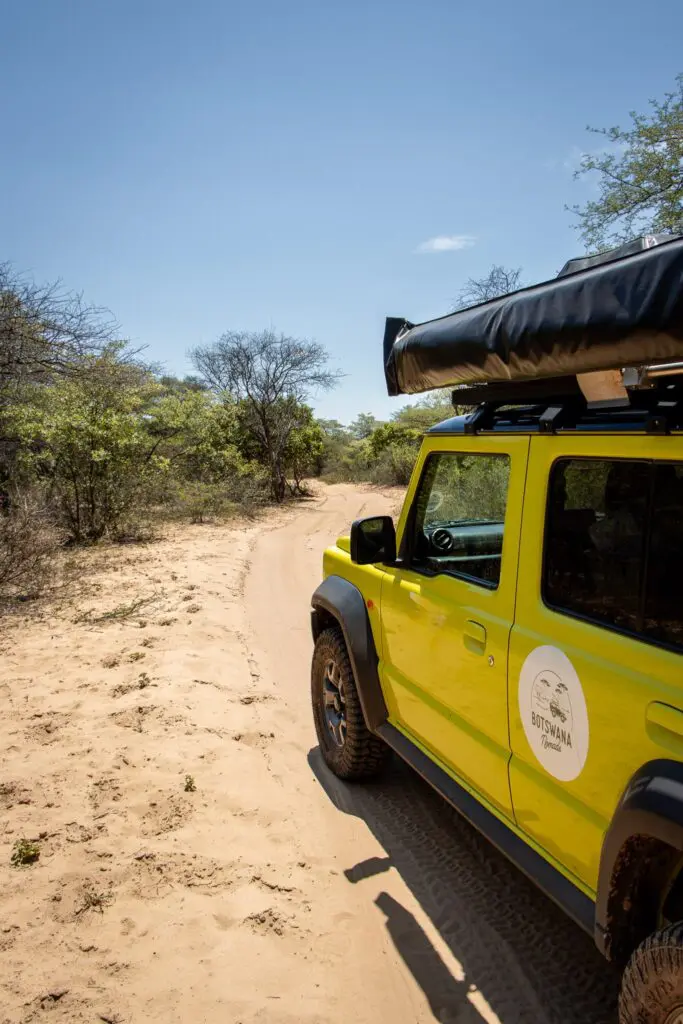 Je doorkruist Botswana in een Suzuki Jimny, een goed uitgeruste 4×4 jeep waarmee je makkelijk alle wegen en nationale parken kan trotseren.