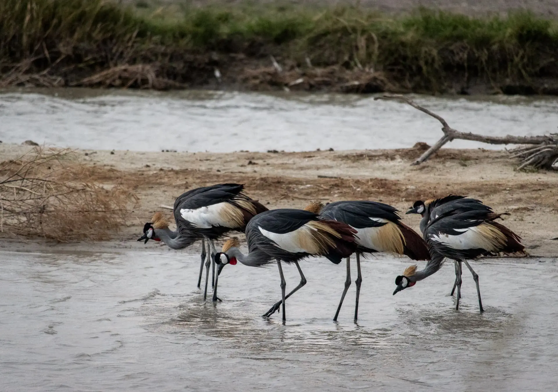 Naast vogels zie je op het gouden grasland ook zebra’s, gnoes, struisvogels en hyena’s.