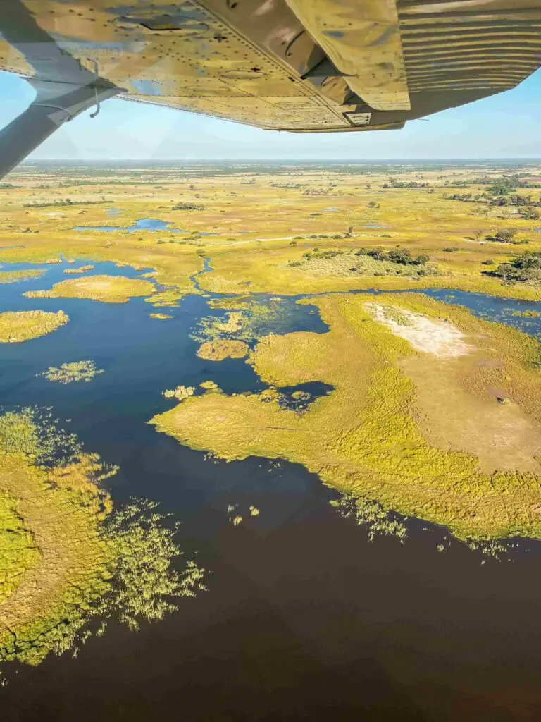 Tijdens de vlucht spot je vaak kuddes olifanten, buffels die grazen op de oevers en giraffen die tussen de bomen staan. De piloot vliegt laag genoeg om dieren goed te kunnen zien en wijst interessante plekken aan. Je krijgt een goed beeld van hoe groot de delta eigenlijk is en hoe het water zich door het landschap beweegt.