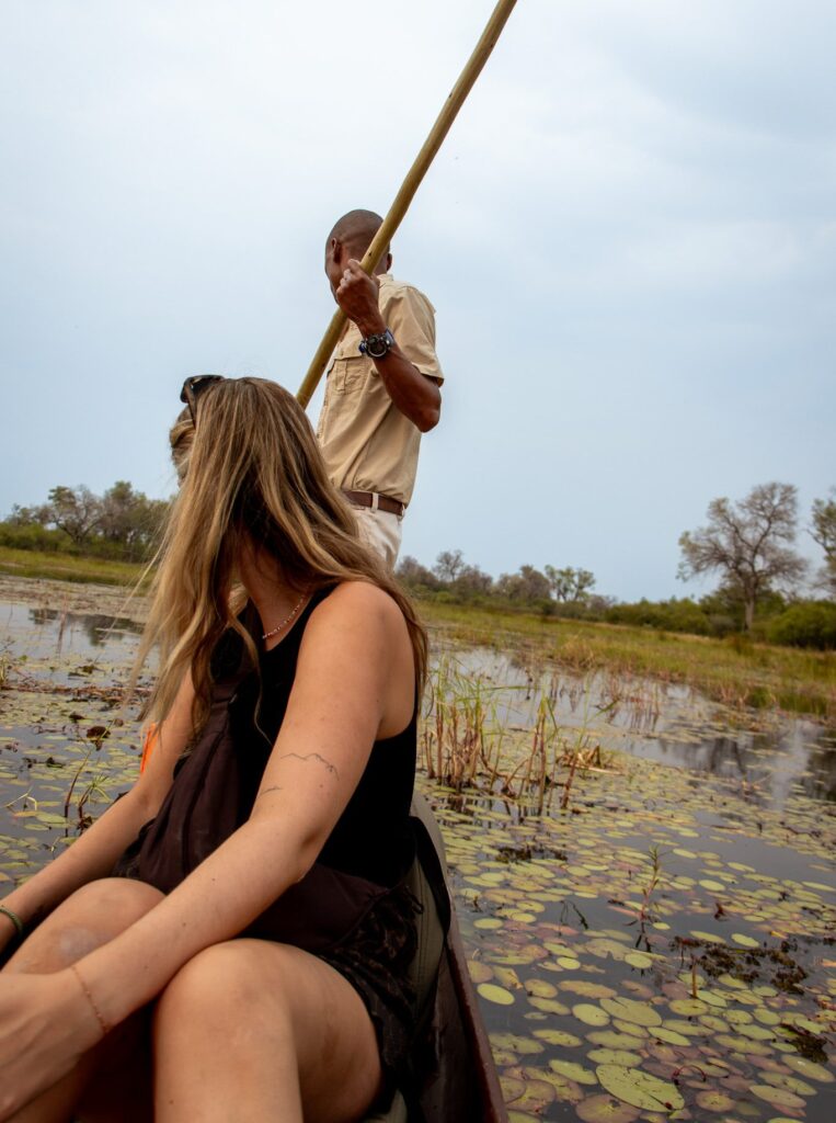 Tijdens je verblijf in Khwai ga je op mokoro-excursie. Je glijdt geruisloos door de Okavango Delta in een mokoro, een traditionele kano die door je gids met een lange stok voortgeduwd wordt. Het water is spiegelglad en je vaart tussen papyrusriet en waterlelies door terwijl je gids je vertelt over de planten, dieren en het leven in de delta.