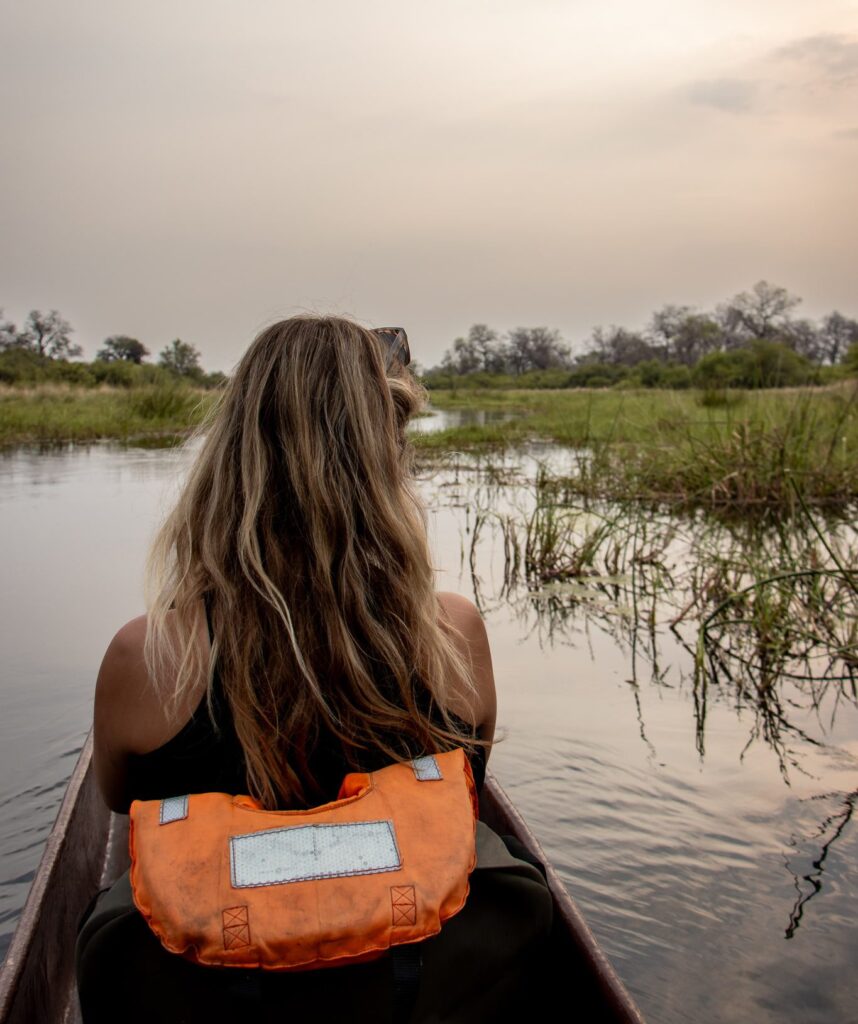 Vanaf het water spot je met geluk olifanten die naar de oever komen, buffels die grazen in het riet en nijlpaarden die hun kop boven water steken. De stilte wordt alleen doorbroken door vogelgeluiden en het zachte geluid van de stok die door het water gaat.