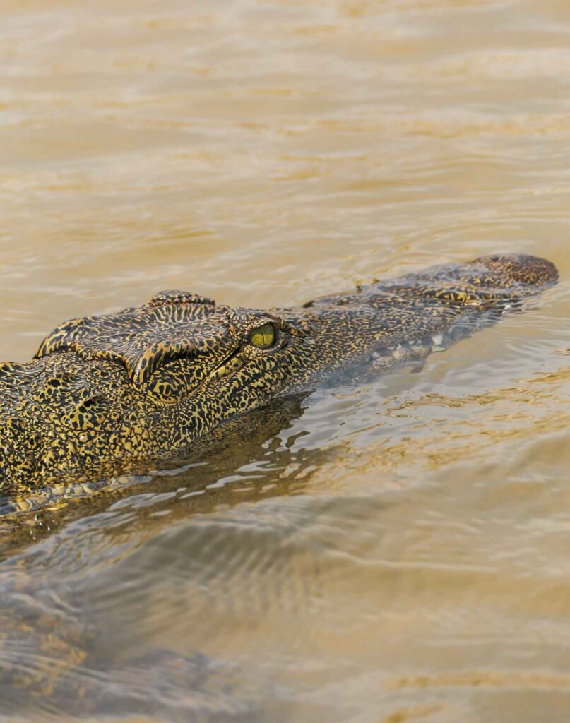 Het gouden licht van de ondergaande zon kleurt de rivier oranje en roze. Kuddes buffels steken over, giraffen buigen voorover om te drinken en overal om je heen hoor je het geroep van visarenden en andere vogels. De boot vaart langzaam tussen de dieren door terwijl de lucht steeds meer kleurt. Als de zon verdwijnt achter de horizon, vaar je terug met een drankje in je hand.